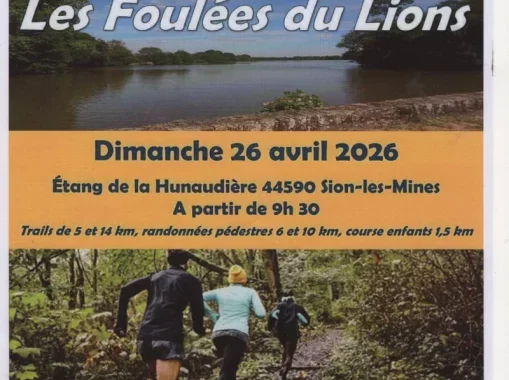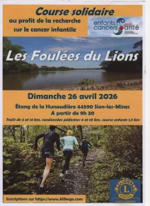 Dimanche 26 avril à partir de 9h30 le Lions Club de Châteaubriant organise au départ du site des Forges de la Hunaudière, » Les Foulées du Lions » au profit de la recherche sur le cancer infantile. Plusieurs épreuves sont prévues des trails de 10 et 14 km majoritairement sur les hauteur de la chère, des randonnées pédestres de 6 et 10 km qui pour le parcours 6km suivra le cours de la Chère et une course pour les enfants de 1,5km qui fera un parcours dans le bois de la Chapelle Saint Eloi.
