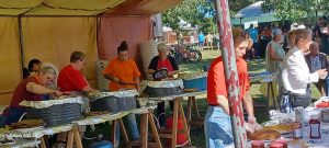 Cette année encore, la 29ème édition du Marché Campagnard de la Hunaudière tient ses promesses. Plus de 40 exposants s’installent, depuis 7h30, aux différents endroits prévus par les organisateurs. On y retrouve à la fois des producteurs ou transformateurs : Miel, fromage, pains, producteur de spiruline, de bières, de glaces, mais aussi des artisans très divers, cela va d’objets récupérés associés pour donner des objets décoratifs, de la vannerie, des sabots, des bijoux, des objets en maroquinerie. Une très grande diversité qui plait aux visiteurs.
